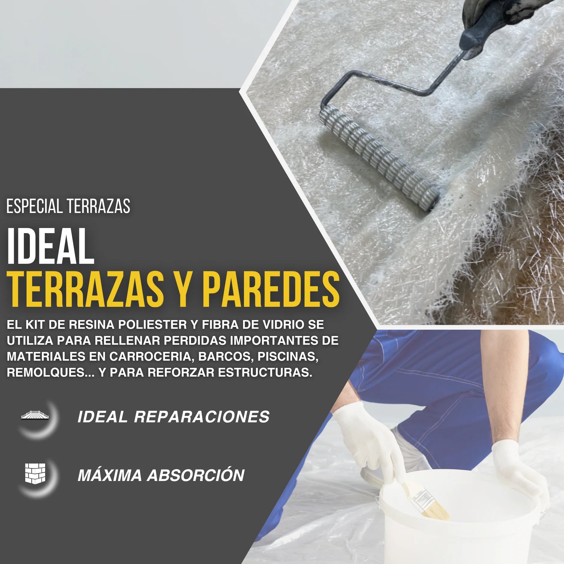 Incluye resina, catalizador y fibra de vidrio para un acabado profesional.