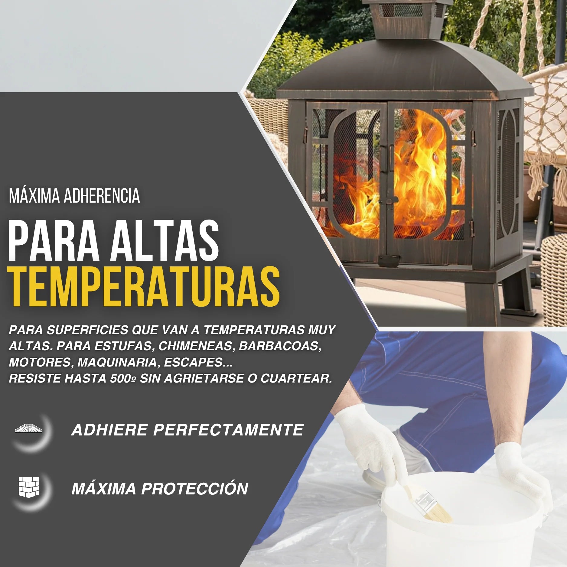 Ideal para chimeneas, estufas, hornos, caños y superficies metálicas expuestas a altas temperaturas.